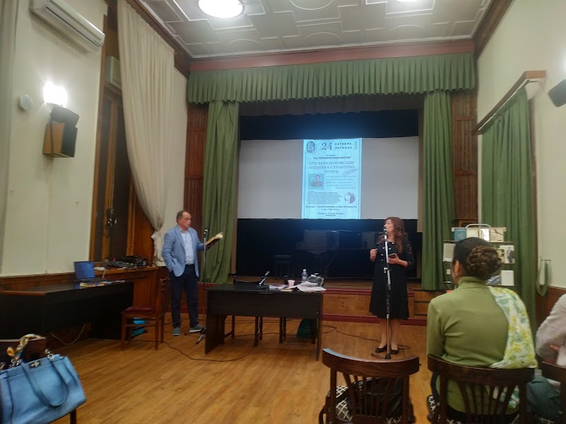 29 сентября состоялся первый в сезоне вечер из цикла «На перекрёстках миров». Он был посвящён трём большим темам: фестивалю «Степная Лира» в станице Новопокровской, Дню переводчика и памяти поэта и барда Дмитрия Курилова. Вечер вели постоянные ведущие цикла, члены жюри нашего конкурса поэты Ирина Ковалёва и Иван Белокрылов. Подробный репортаж здесь.
